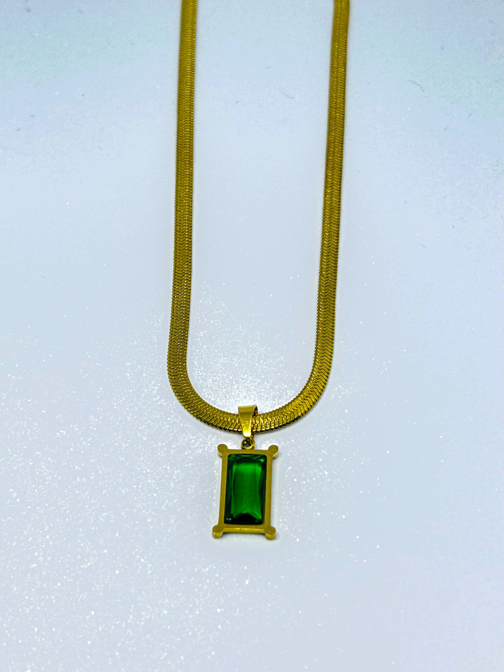 Gold Plated Snake Chain Necklace with Green Stone Pendant