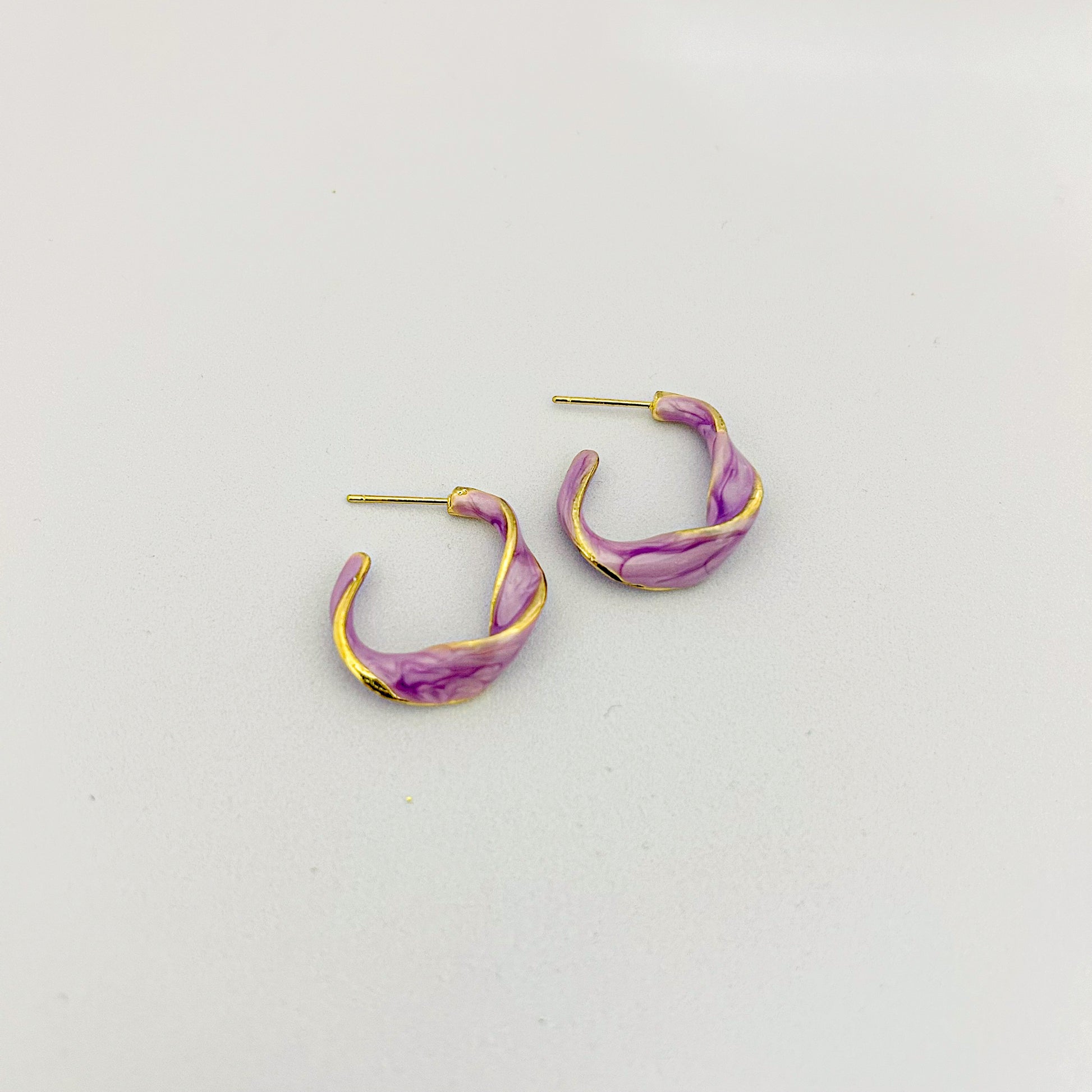 Purple Marbled Twisted Hoop Earrings