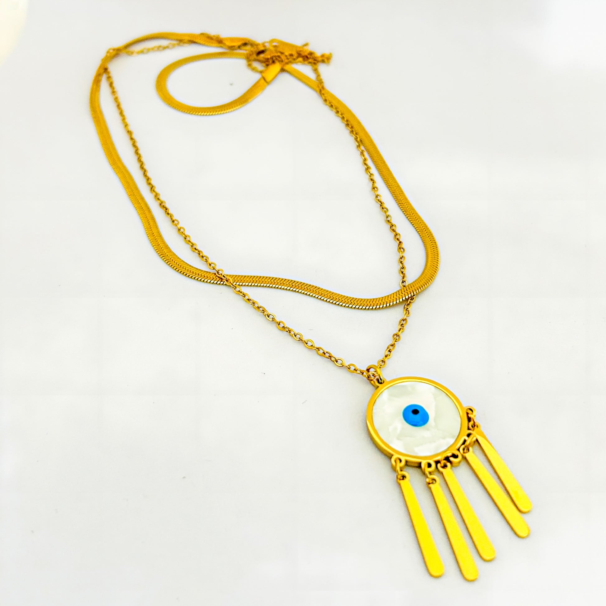 - Evil Eye Protection - Features a white mother-of-pearl or enamel evil eye with blue center for traditional protective symbolism