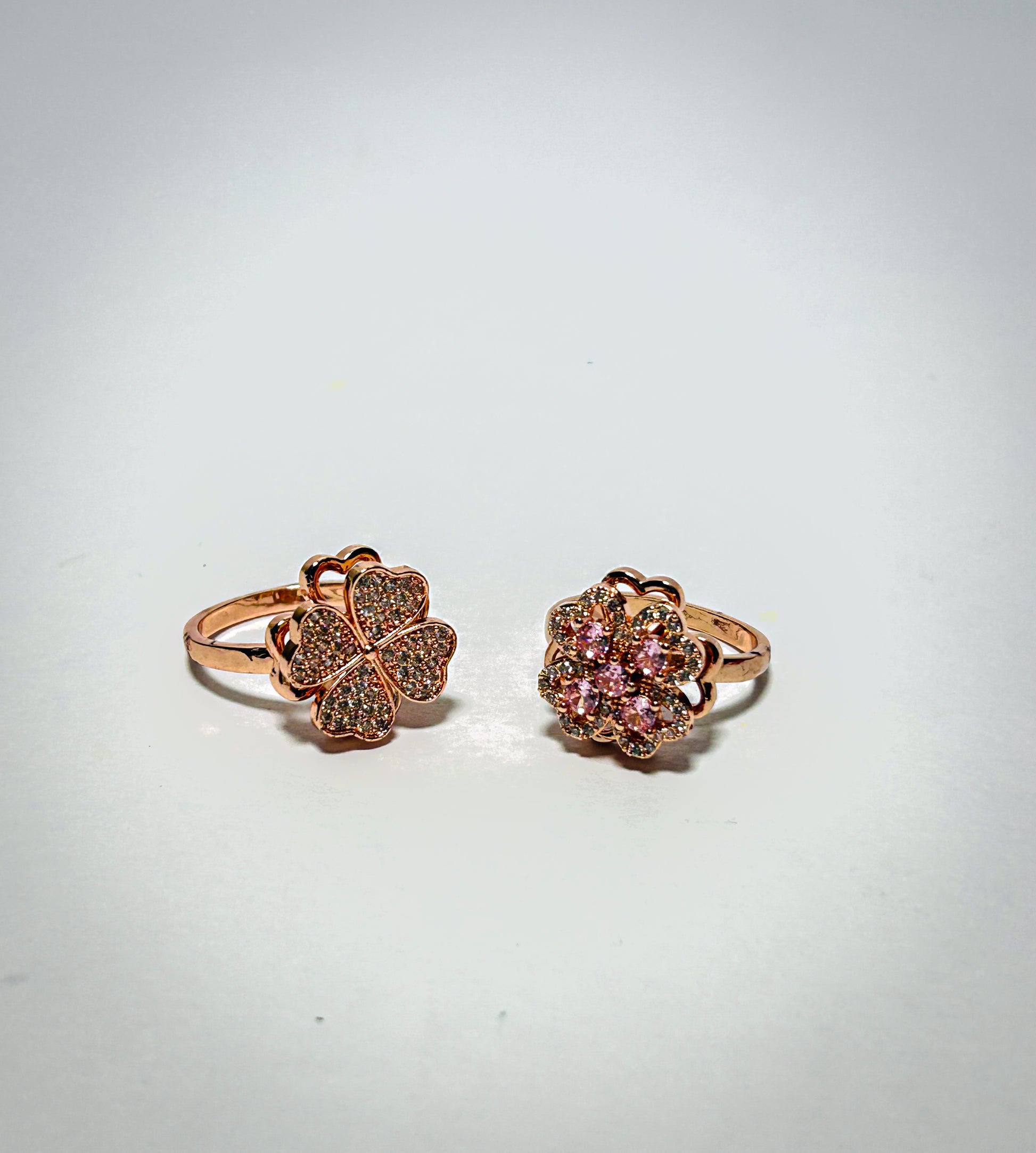 Rose Gold Clover Crystal Ring Set-Set of 2