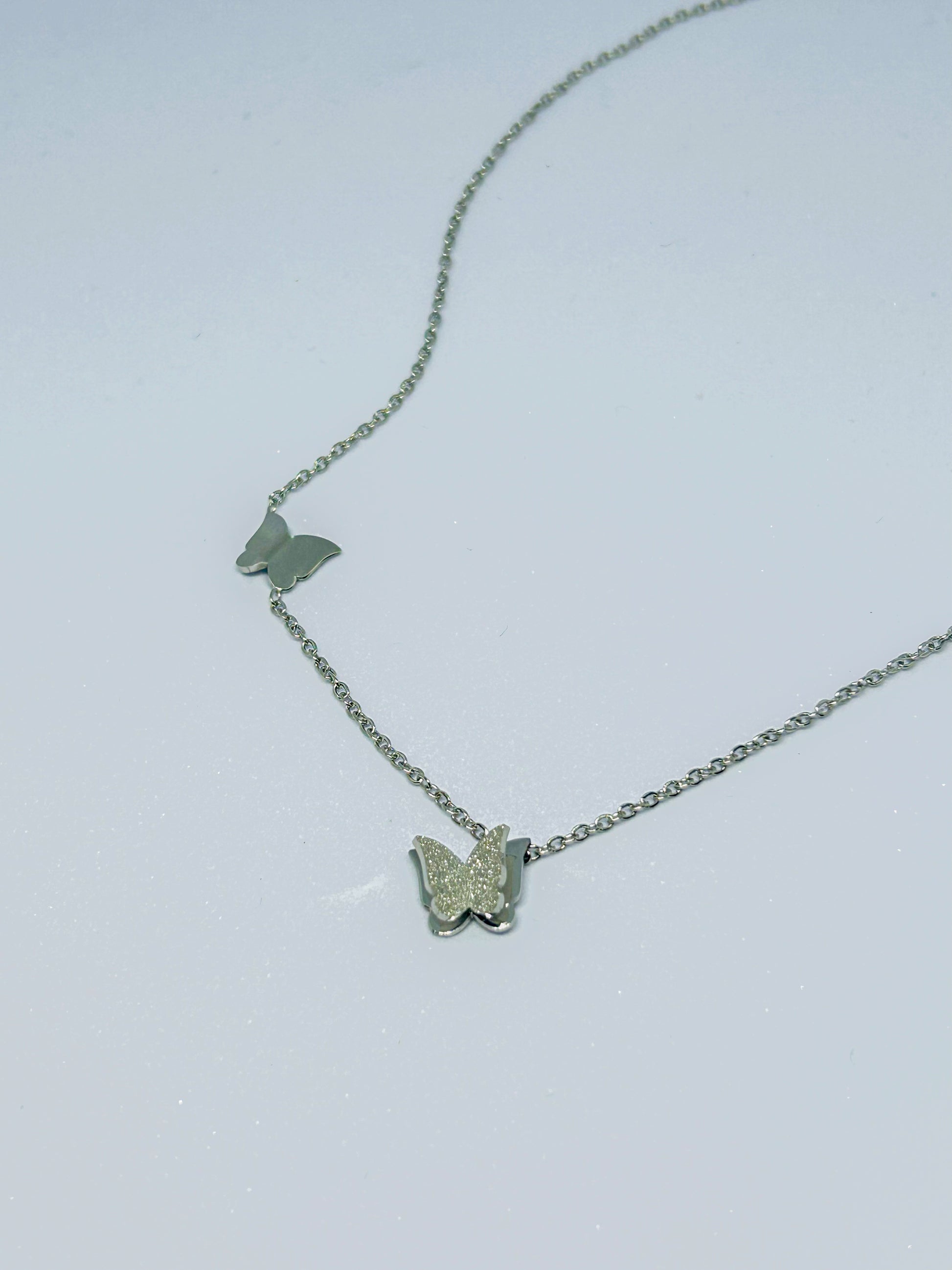 - Design: Two delicate butterfly charms on layered silver-tone chains
